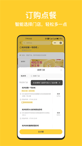 1、智能系统推荐附近所有门店资源,轻松找到奶吧前往品尝美味。