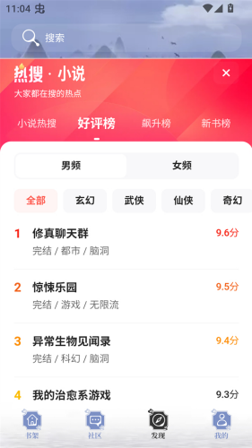 5、软件支持实时热门小说排行,帮助用户快速选择当前流行的书籍。