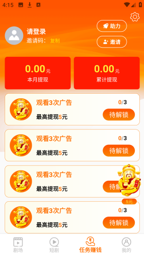3、分享赚红包:用户可将短剧分享给好友,邀请好友加入闲映,获得红包奖励。