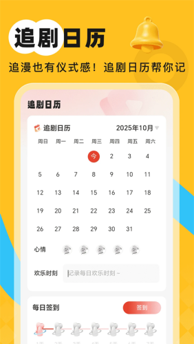 2、追剧日历:每日打卡标记进度,用心情作文,让不同的瞬间都是有迹可循的。