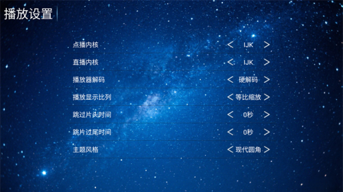 3、然后我们也可以通过下方的“播放设置”功能来对点播内核、直播内核、播放器解码等参数进行设置。