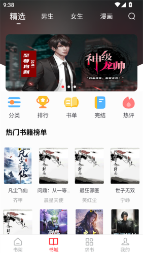 2、在书城界面下,我们可以根据类型、排行、书单等一系列条件进行小说漫画筛选。