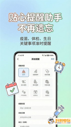 可自由选择对应的类型记录宝宝信息,以便高效保存,知道宝宝的生活。