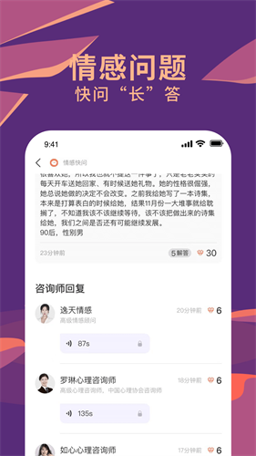 用户可以在线咨询任何情感问题,便捷易用,只需将问题发布出来,即可获得专业的解答。