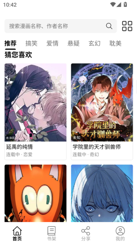 2、丰富多样的漫画选择:包括少年、古风、奇幻、搞笑、校园都市、治愈、悬疑、励志等类型,满足不同用户的阅读需求。
