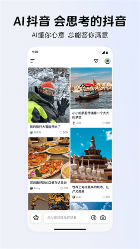1、AI抖音,会思考的抖音,整合AI深度理解能力,带来全新内容体验。