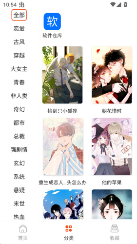 2、接下来我们就可以在分类里获取到恋爱、穿越、青春、奇幻等多种不同题材的漫画资源进行选择,从而找到自己喜欢的漫画。