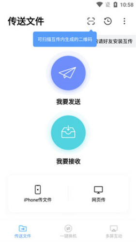 3、如果接收者未安装互传app,可以扫码下载。
