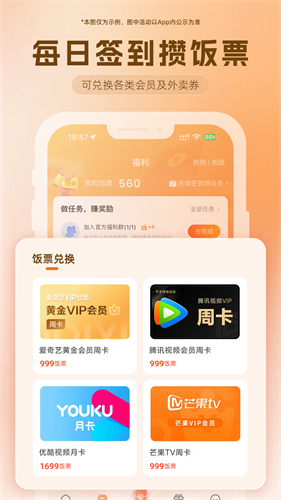 2、选择想要吃的外卖,点击抢单,里面可以开通会员,会员非常便宜,并且新用户可以免费领取会员,老用户也可以用饭票换取会员。