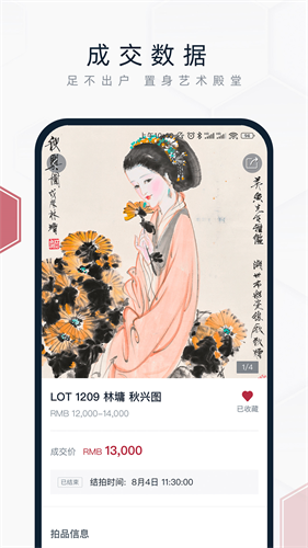 将各种艺术藏品的真实竞拍成交数据信息公布展示,能够了解实际的拍卖成交价格。