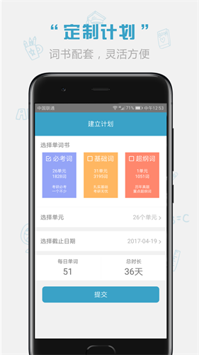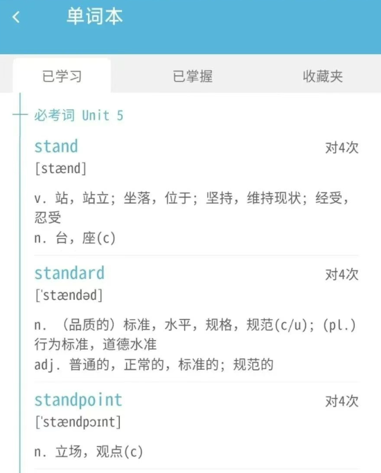 根据纸质书的单元划分(必考词、基础词),可灵活制定和调整学习计划。