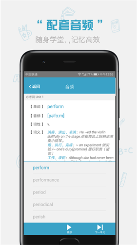 2、完整复刻纸质书籍架构,必考词、基础词、超纲词三阶内容与实体书单元编排完全同步。