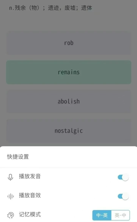 提供“中-英”和“英-中”两种记忆模式,帮助强化记忆。