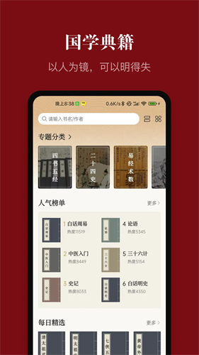 四书五经、二十四史、历代演义等经史子集在线阅读,配合职官辞典、文言文字典工具,破解古籍阅读难题,零基础也能轻松读懂国学经典。