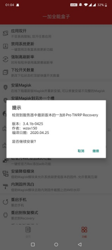 用以修复安装不完整的Magisk,亦可以用于更新Magisk(及Magisk APP)