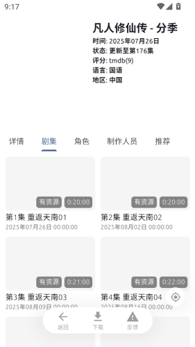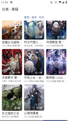 4、索引搜索功能:支持按类型、年份、评分等方式查找动画资源,快速找到想要的歌剧。