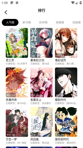 5、内置漫画榜单供挑选,也支持直接搜索目标内容,全网漫画资源都能找到。