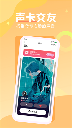 支持声卡交友,让用户之间通过声音来交友,找到令你心动的声音。