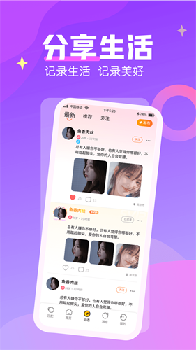4、分享生活点滴,浏览他人动态,在互动中发现更多志同道合的朋友。