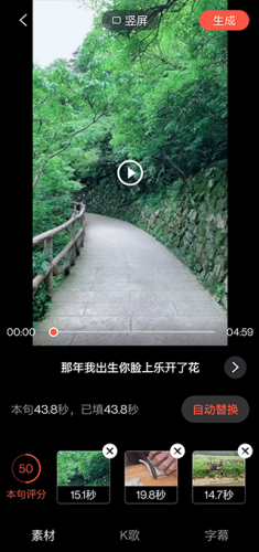 智能素材填充功能,只需简单一键,短短一分钟就能轻松生成高质量视频,省时又省力。