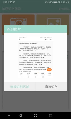 5、特别是用手机看小说,太费眼,一键将小说内容截屏,本软件即可帮你识别截屏内容并朗读出来,同时支持多张截屏一起识别加入朗读队列。