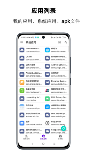 4、应用程序列表:用户安装,系统预置,apk文件可以更好的管理,使用方便。