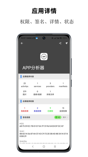 7、可获取应用的证书签名、MD5 值等关键安全信息,辅助用户判断应用是否可信。