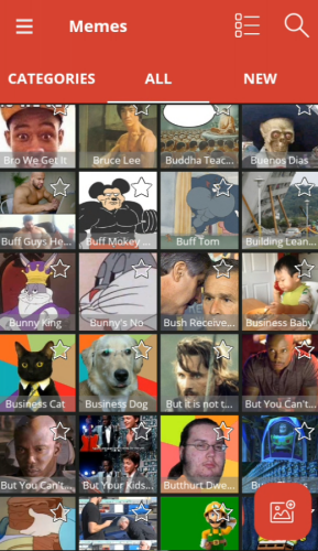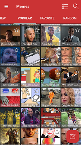 1、在本站下载meme动画制作软件手机版,软件一打开就能看到很多有意思的梗图,都能使用。