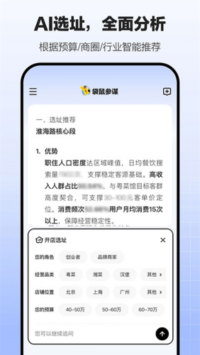 1、打开登录袋鼠参谋app后即可让它根据你所处的位置进行开店选址。
