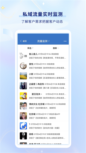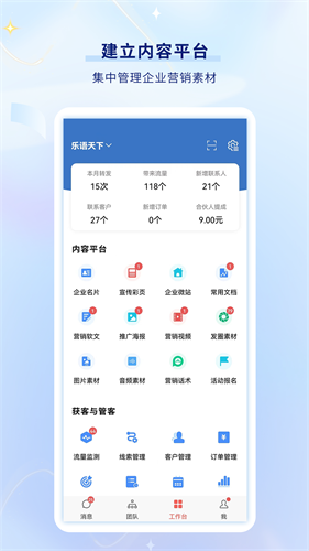 乐语app官方版是一款一站式私域运营移动平台,它将智能名片、客户管理、营销素材库、微站小程序等核心功能深度整合,构建起从获客到成交再到复购的完整闭环。有了这款应用,销售人员可通过电子名片一键分享个人主页,客户点击后即触发销售雷达,实时追踪浏览行为与兴趣偏好,同时内置的软文营销与红包裂变工具,助力内容高效传播,提升转化率。不仅如此,乐语app官方版的客户管理系统会自动归档沟通记录,并根据互动频率智能提醒回访节点,避免重要线索流失,同时你可随时调用平台提供的营销软文、促销海报或限时红包,一键分享至微信群或私聊,激发二次传播。微商城与小程序功能则让个人品牌具备完整交易能力。它不像冰冷的CRM,而更像一位懂业务、会提醒、能助攻的随身助理,让每一次真诚交流都有可能开花结果。