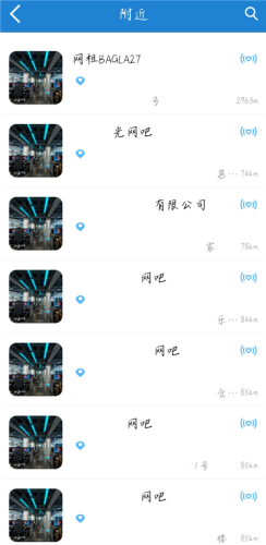 4、此外,我们还可以点击附近按钮,可以查询到附近的网吧以及宾馆。