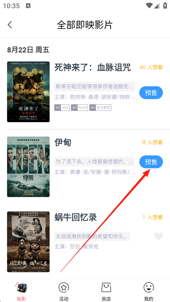 2、选择想要购买预售票的影片