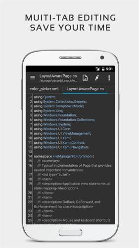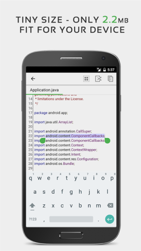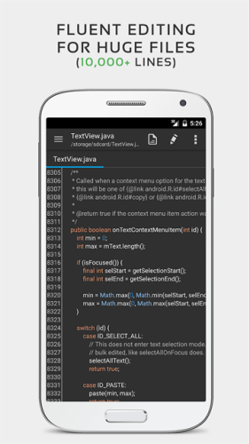 QuickEdit安卓版下载免费版是一款非常不错的文本编辑器,用户可以在这一站式体验最简单的编辑方式,支持多种源代码文本查看,本地快速修改,轻松保存,提供了多种常规编辑功能,复制、粘贴、替换、撤回、重做、导入等等,让用户可以在这里轻松完成文本的编辑修改,一站式满足每一个用户的使用需求。软件还拥有大量性能和用户体验方面的优化,速度和输入反馈相较于其他文本编辑器更加的优越,比如可以在超过10000行的大型文本文件中流畅的编辑,显示或者隐藏行数等,使用起来非常的方便,有需要的用户可以下载体验。