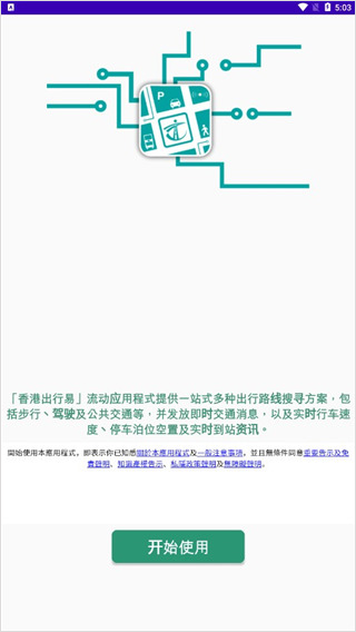 1、打开香港出行易App,点击开始使用即可进入。
