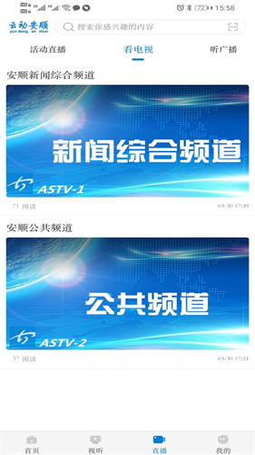 3、在视听功能页可以观看安顺本地各个电视栏目;