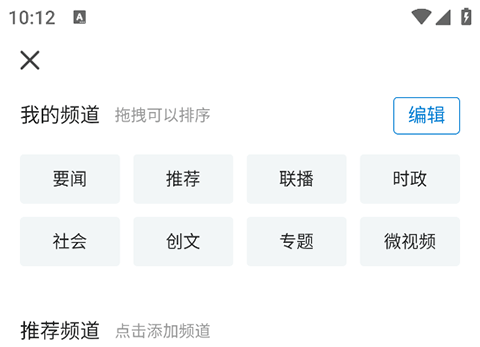 2、点击右上角的+号按钮,在这里您可以编辑调整频道在首页的排序位置;