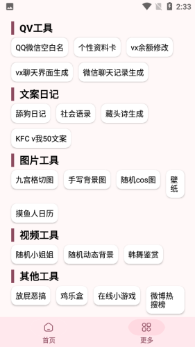工具界面,为用户提供了藏头诗生成,社会语录, qq微信空白名,在线工具,在线等超多功能。