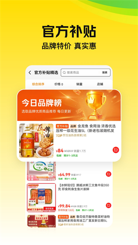 7、精选品牌商品提供官方补贴,以更低价格呈现,如食用油、三文鱼等热门商品均有补贴优惠。