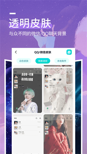 2、透明壁纸、动态壁纸、高清壁纸、头像、主题美化、背景图、名片、心情图,只要你想要的,这里都有。