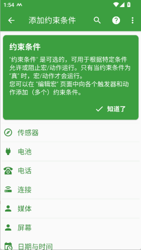 3、触发条件:提供了各种触发条件,如时间和日期,连接到特定网络或蓝牙设备,接收特定短信等等。用户可以选择一个或多个条件来触发宏。
