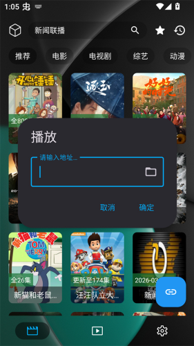3、我们也可以点击右下角的蓝色标志,然后输入其他的视频源地址,从而快速更换视频源。