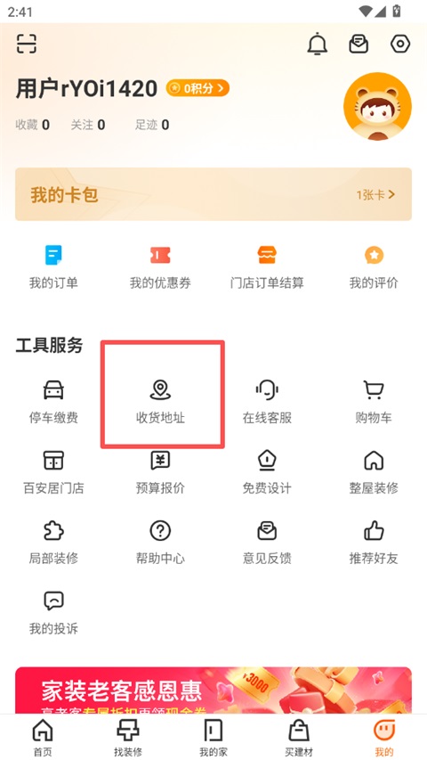 1、打开百安居APP,点击底部导航栏右下角的"我的",进入个人中心;