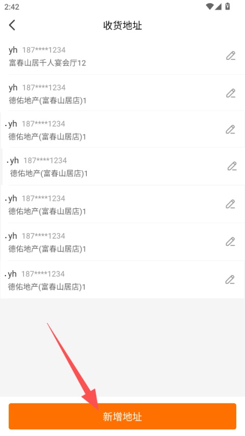 3、进入收货地址页面,点击底部的"新增地址"按钮;