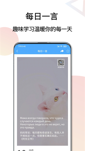 4、每日一言栏目每日更新俄语谚语,支持收藏至本地并设置开机自启提醒。