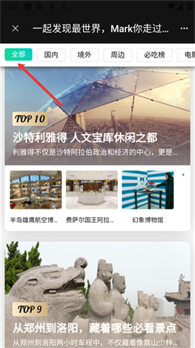 2、全部板块涵盖广泛,有沙特利雅得人文景点,还有郑州到洛阳的必看景点推荐,满足不同旅行需求。