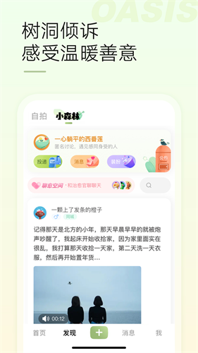 绿洲官方正版是一款为喜欢社交的年轻人准备的奇妙应用,如今的朋友圈熟人太多,发张照片要考虑半天,写句话要斟酌再三,最后干脆懒得发了。绿洲把这种社交压力卸得干干净净,在这里分享生活不用顾忌谁的眼光,那些随手拍下的黄昏、路边遇见的猫、今天吃到的好东西,都可以痛痛快快发出来。绿洲官方正版的整个界面做得特别清爽,没有乱七八糟的广告和营销号刷屏,刷起来全是真实用户在分享日子。应用还专门留了一块地方给那些需要倾诉的人,不管是工作上的委屈,生活里的烦闷,还是那些说不清道不明的小情绪,写下来投进去,真的会有人认真看、认真回。那些回应往往来自完全陌生的用户,可偏偏就是这些人,愿意花时间给一句暖心的话,或者分享自己类似的经历。这种感觉就像在一片望不到边的沙漠里走着走着,忽然遇见一汪泉水,那种被看见、被接住的暖意,很久没有体会过了。