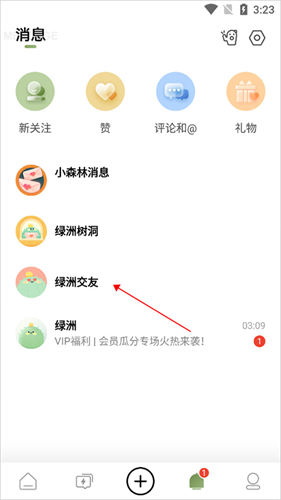 2、也可进入消息页面中点击【绿洲交友】。