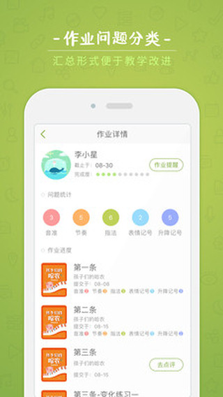 能够查询每名学生作业进行状况,线上点评作业,激励学生培养一个优良的读书习惯;