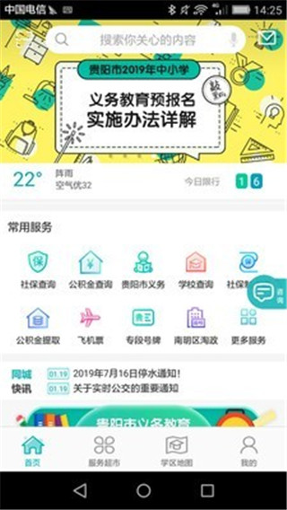 从查寻服务指南、交纳日常生活信用卡账单、住房公积金、查寻汽车违章,再到精准脱贫业务流程审理,校区地形图的查寻这一系列贵阳市当地的公共文化服务。