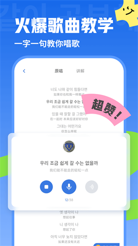 2、拥有最正规的外语歌曲发音,让您可以快速的练就一口标准的韩语。